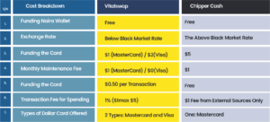 VitalSwap Virtual Dollar Card vs Chippercash Virtual Dollar Card